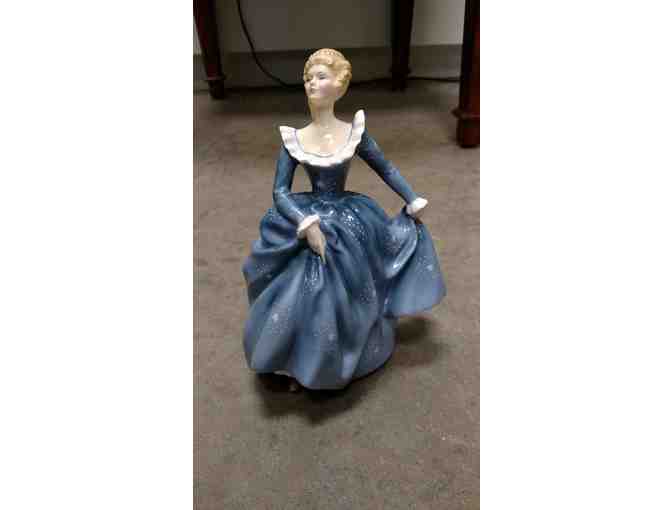 Produced between 1966-1995 this 8" Royal Doulton figurine features a young Victorian woman walking in a beautiful blue gown.