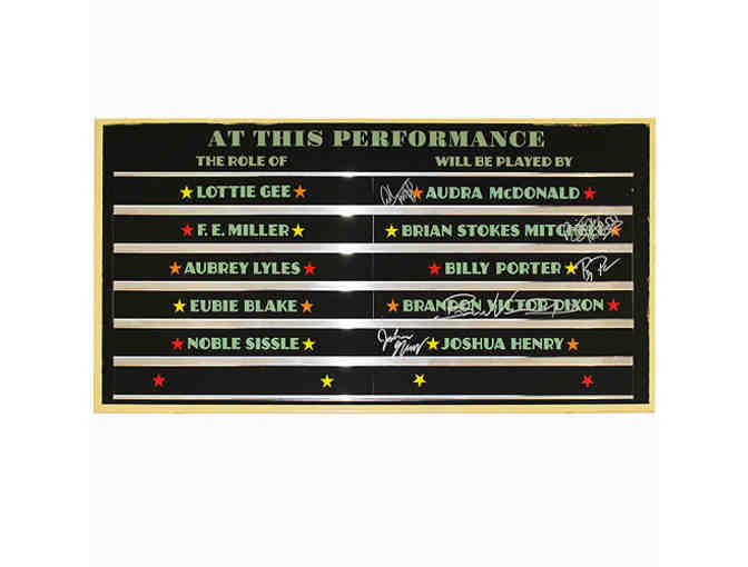 "At This Performance" board from Shuffle Along, Or The Making of the Musical Sensation of 1921 and All That Followed, signed by Brandon Victor Dixon, Joshua Henry, Audra McDonald, Brian Stokes Mitchell and Billy Porter