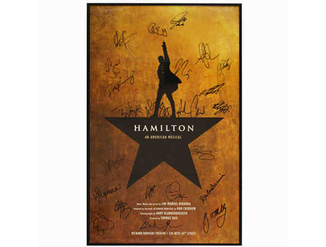 Hamilton poster, signed by the entire Broadway company, including Lin-Manuel Miranda, Leslie Odom Jr., Daveed Diggs, Rene Elise Goldsberry, Rory O'Malley, Phillipa Soo and more