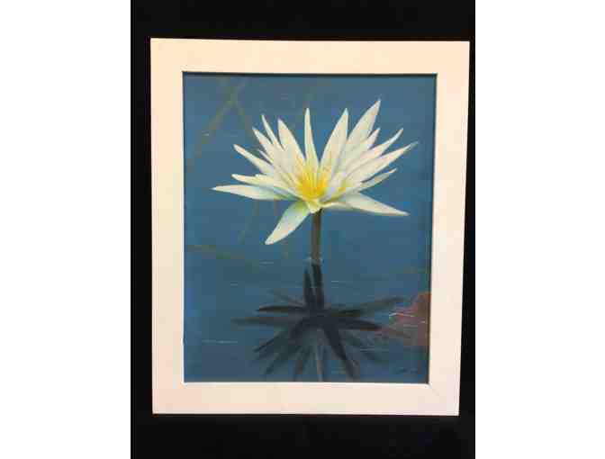 Add a little peace and serenity to any room in your home with this painting of a beautiful single water lily from a pool at a Mayan City. Artwork is framed and approx. 18"x22".