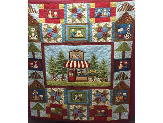 This adorable quilt, "Adopt Me Today", is a colorful tribute to Woofstock! Wrap up in the warmth of this quilt and know that your donation is providing the same loving comfort to pets in need. Measures 60" W x 66" H.