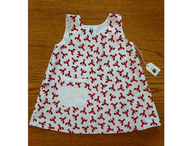 Hand-made baby dress with cute and quirky lobster print donated by Hatch On Maine in Brunswick.