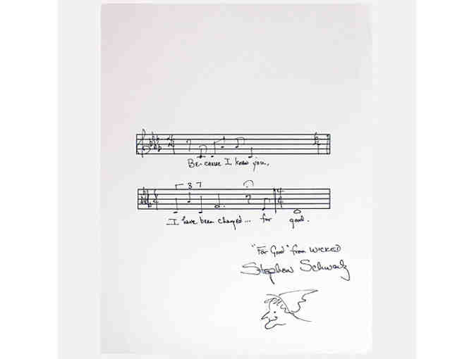 D. From the score of Wicked: “For Good” handwritten and signed by Tony Award-winning composer/lyricist Stephen Schwartz. Don’t miss Schwartz’s sketch of Elphaba at the bottom of the page.