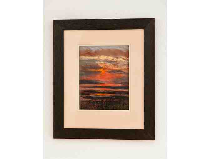 A beautiful sunset on the Great Salt Lake, spontaneously captured in vibrant layers by artist Jennifer Worsely using her homemade pastel chalk. Framed and matted original artwork.