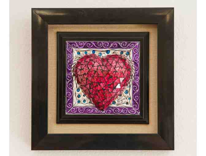 Framed Hand Embossed Glass Mosaic Heart by Veronica Sandoval