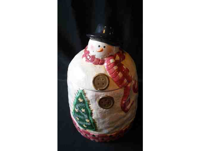 Decorate your holiday table with this adorable snoman cookie jar and then fill it with some of your favorite snickerdoodles, shortbread cookies, or frosted sugar cookies. Your kids and family will thank you. Stands approximately 11" tall.
