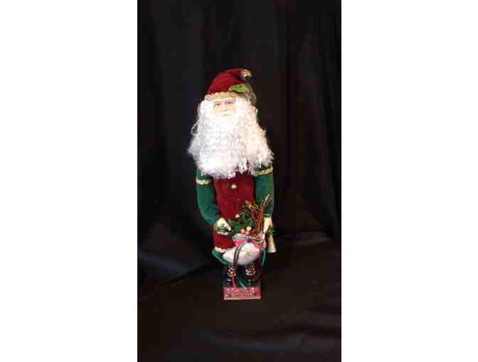 Look at that face! This tall and skinny St. Nick will make you and your guests smile. He stands on a heavy base and would be perfect for the corner of a side table or peeking out from a bookcase. The base says "Merry Christmas" on it. Stands approximately 18" tall.
