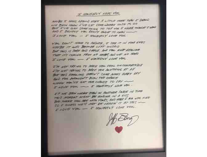 Print of "I Honestly Love You" song lyrics autographed by songwriter Jeff Barry.