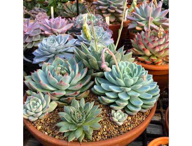 This outdoor container of your choice is filled with tender succulent plants for year round enjoyment! Designed by Carrie Waterman, this container of succulents will add color to any living space.