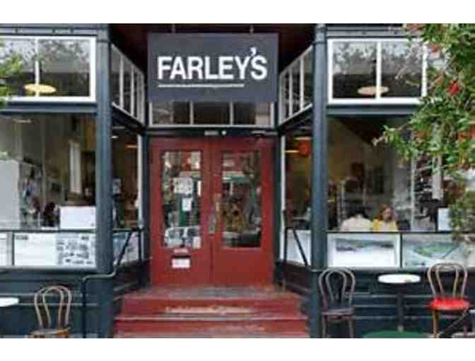 Treat yourself with this $30 gift card to Farley's! While Farley's roots are in coffee, you can also enjoy a hot or cold panini, healthy salads, homemade soups, and inspired baked goods made at Farley's central kitchen in Emeryville. All of Farley's food is made from scratch or sourced from local purveyors who share the same food values: simple, sustainable, inspired, and never pretentious. Located at 33 Grand Avenue and 1195 65th Street in Oakland, as well as 1315 18th Street in San Francisco. Bon appetit!