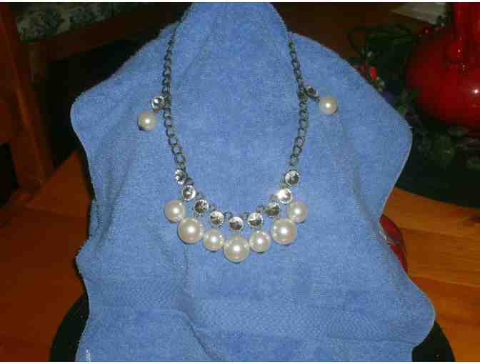 Pearl & Rhinestone Matching Vintage Necklace and Earrings