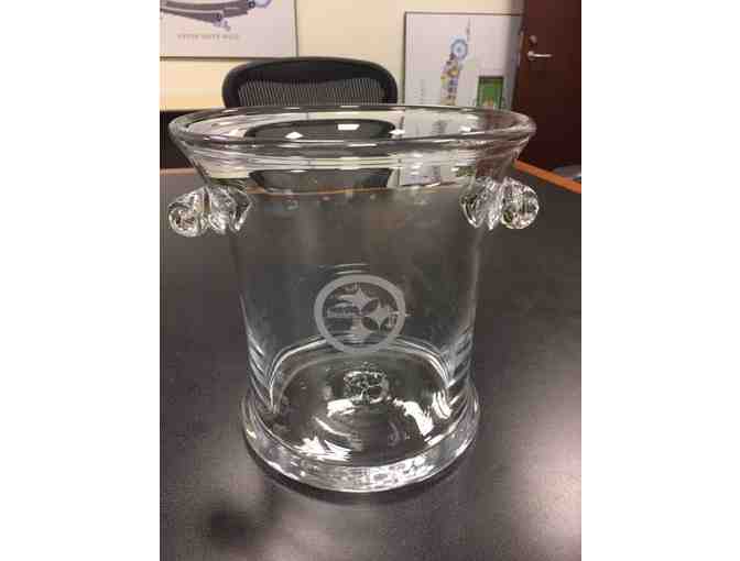 You are bidding on a Steelers Engraved Bottle Chiller. Fill up this beautiful glass bottle chiller with ice, wait for your bottles (of any variety) to get cold, sit back, relax, and watch the Steelers play!