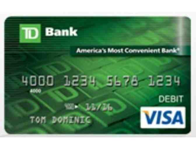 This $50 card is donated by TDBank. Your card can be used at the mall, over the phone or online - everywhere Visa or NYCE is accepted. The amount of your purchase is automatically deducted from your card's available balance.