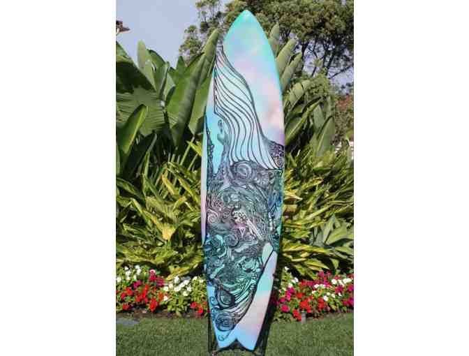 Once she returned home to San Juan Capistrano, California, she furthered her learning by attending culinary school in Laguna Beach, California. Being an Orange County native, it was only natural for her to start utilizing all different types of mediums on old surfboards.