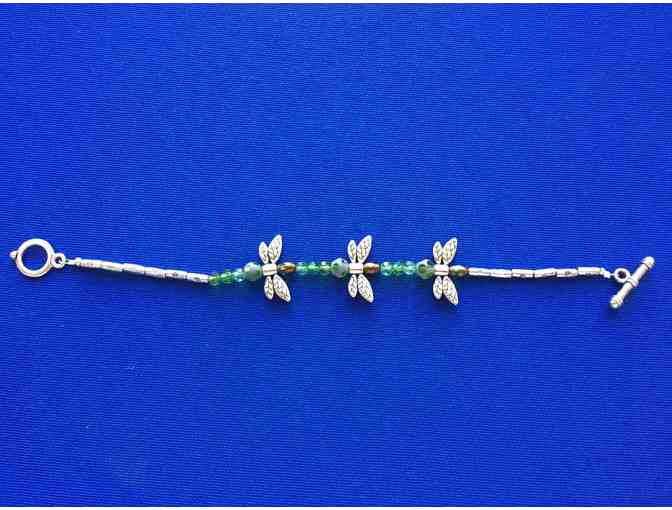 Place your bid on this charming, handmade, silver and green firefly bracelet that measures 7" long! This piece has a toggle closure and will compliment so many outfits! You won't want to miss out on this piece!