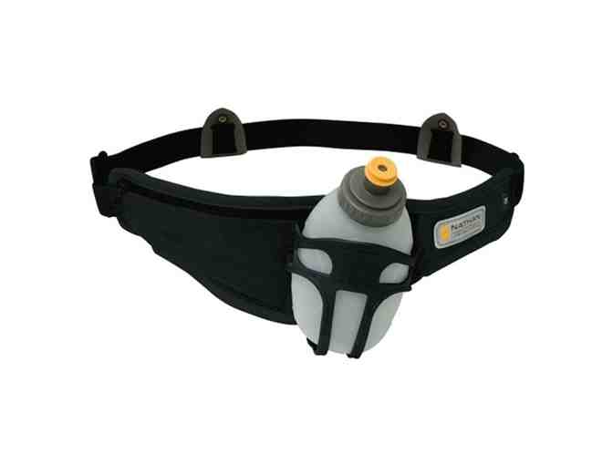 The Nathan Swift Bottle/Race Belt is an carrier. An elasticized belt that fits eight ounce flask to keep your body hydrated and full of nutrients throughout training. An angled, molded holster allows easy access to the bottle, and movable clips hold any size of race card while an incorporated, waterproof I.D. holder stores identification or a medical emergency card.
