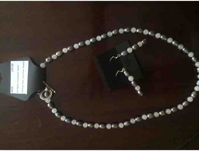 Dzi agate, freshwater pearls, sterling silver, lead-free pewter
