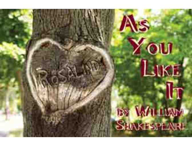 Bid for a walk-on role in As You Like It - See a First Folio production from the INSIDE - You or someone you love will have a real role in the Summer 2016 production of As You Like It for one performance. Join the cast for the read-through, rehearsals and staging. You'll feel like a real insider, while you'll feel like a professional actor in costume and make-up on stage! And you'll receive a keepsake photo of you with the cast on stage! The perfect Christmas gift for the Thespian in your life! Performance Date to be mutually agreed upon.