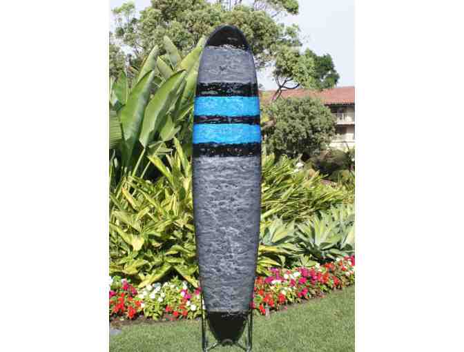 This surfboard has been donated by Laguna Beach Surfboard Company in support of Surfers Healing. The board had an extensive life on the ocean riding waves. It is now preserved as a surf artifact in a coating of vibrant colored epoxy so it can be presented as an art piece and continue to be enjoyed.