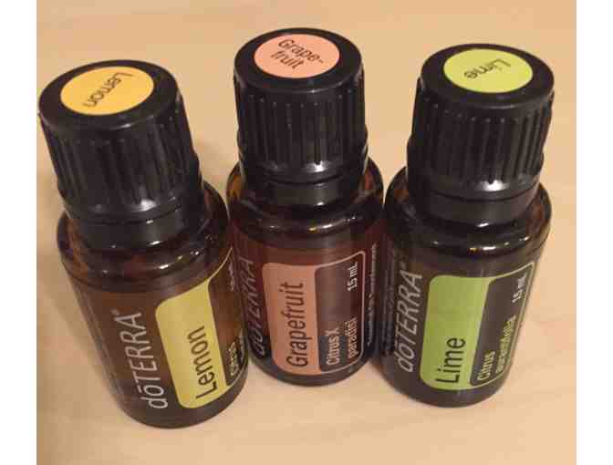 15 ml bottles of lemon, grapefruit, and lime oil. Along with instructions and suggestions for use.