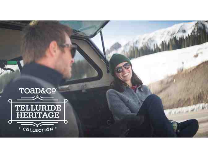 The winning bidder of this item will receive a top and bottom from Toad&Co’s Telluride Heritage Collection (up to $300 MSRP). You can check out your potential outfit here: http://www.toadandco.com/womens/heritage-collection/