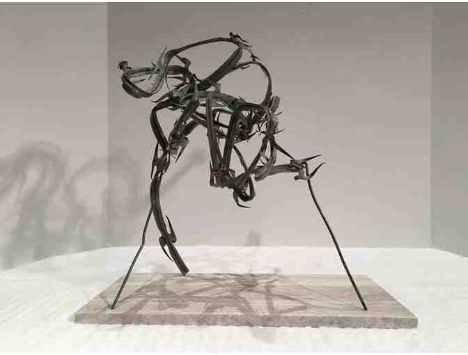 Here’s your chance to own a unique, abstract sculpture piece from local artist Rick Farrell. Cutting Edge challenges the viewer to come close – and to touch. But beware – that’s real razor wire! Galvanized steel on ceramic base. Approximate dimensions 12”W X 10”D X 11”H.