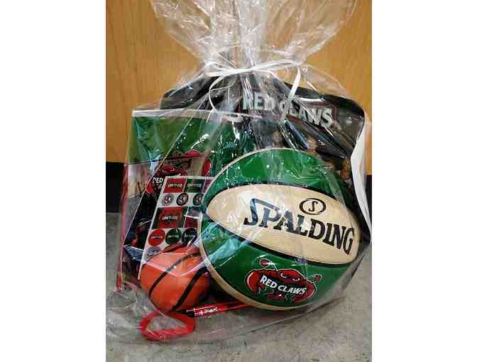 For the Maine Red Claws fan in your life, this basketball bundle pack includes: one Red Claws Basketball; one signed Red Claws program; one Limited Edition Inaugural Season Yearbook; one team poster; two Red Claws pencils; one rubber bracelet; one pack of temporary Maine Red Claws tattoos; and one sheet of Red Claws stickers.