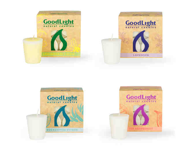 This sampler pack of GoodLight's paraffin-free scented candles includes one votive 4-pack in each of these four delicious scents: Fig Grapefruit, Eucalyptus Citrus, Lavender, and Lemongrass Cassia.