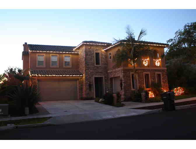 Option for LED energy efficient multicolor or warm white C9 bulbs or warm white icicles. Up to 300ft of lights installed. Includes all cords, timers, clips etc.