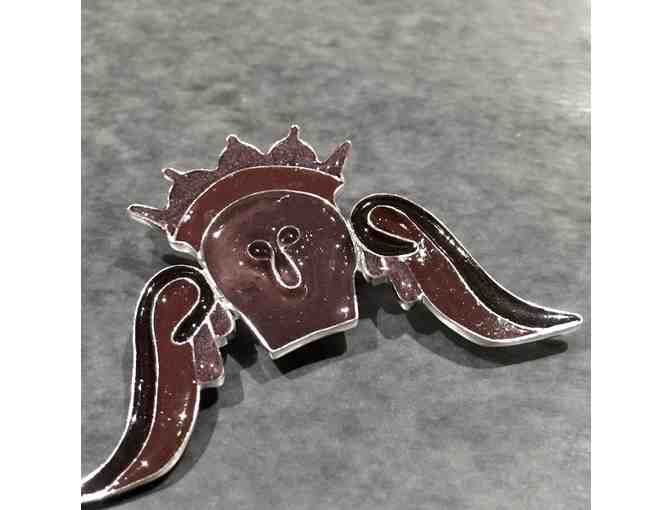A handcrafted sterling silver and resin brooch, inspired by the Farber Gravestone Collection, will be completed and delivered to the lucky winner by December 15, 2016. Inspired by the headstone of Mary Alling, (1758, New Haven) the brooch will measure approximately 2" by 3" and is perfect for your favorite sweater or winter coat. A gift for you or someone else? Make a statement about your love of HISTORY. Follow the construction of the brooch on Instagram - https://www.instagram.com/metalobjects/