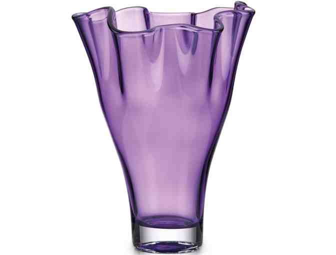 With its ruffled rim and purple hue, the Organics Ruffle Amethyst Crystal 12" Vase will make a statement wherever it's displayed. Place it on your dining room table, filled with fresh flowers... on a table in your foyer, filled with a silk floral arrangement... or anywhere in your home, as a beautiful work of art.
