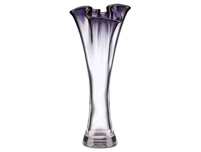 Stunning on its own, the Organics Purple Hue vase makes an impact even without flowers. The ruffled rim begins in rich purple and slowly fades to just a hint of color through the full length of this elegant heavy crystal vase. Add your favorite real or silk flowers and create a truly artful display. The cylinder shape makes this vase a perfect design accent to top shelves or tables. Makes a wonderful gift.