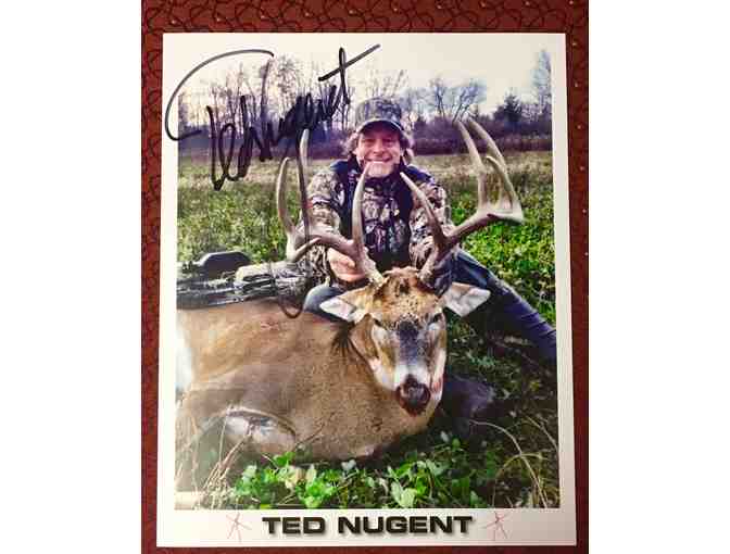 This is a personally autographed 8x10, color photo of Ted Nugent.  Also included is a Ted Nugent-"Spirit Of The Night" Sticker.