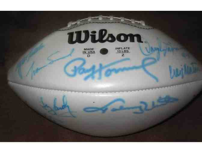 Quarterback Legends Wilson Football signed by Johnny Unitas, Craig Morton, Norm Snead, Daryl Lamonica, Y.A. Tittle, Danny White, Ken Stabler, Joe Ferguson, Charley Johnson, Steve Grogan plus Paul Horning,slightly deflated. Comes with certificate of authenticity.