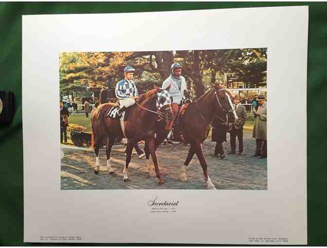 Photo of Secretariat Horse of the Year in 1972, '73 and racing's Triple Crown Winner in 1973. Printed on heavy paper, not framed. Measures 18.5 x 15.5"