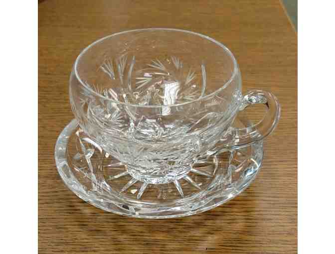 Genuine, deep-cut crystal tea cup with saucer from Tiffany & Co.