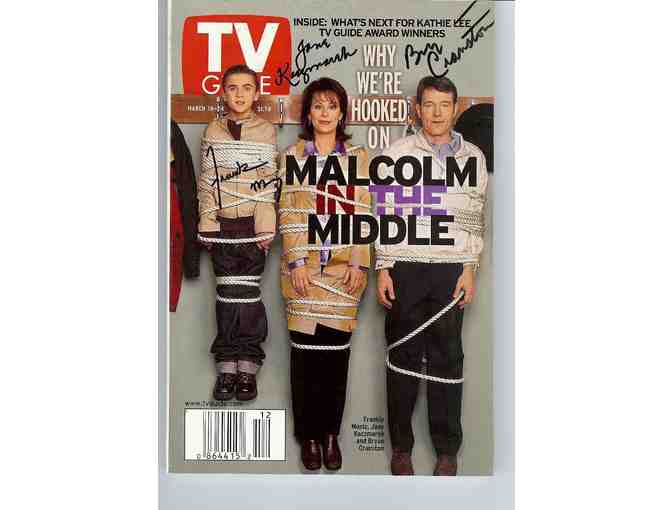 TV Guide from March 18, 2000. Autographed by Bryan Cranston, Jane Kaczmarek and Frankie Muniz.
