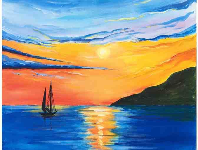 "Harbor Sunset" is one of the featured paintings created by Lee-Jean, the founder of the studio for "Art Experience Night - Adult Social Painting Party". It depicts a sunset scene in California coast that we all treasure.