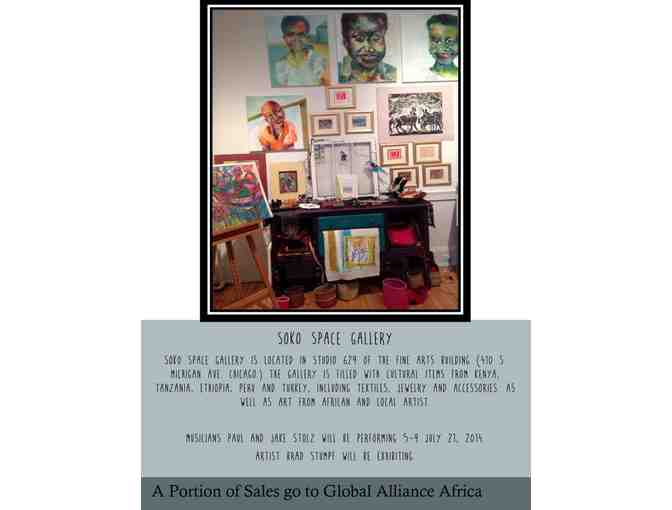 Description: Gift certificate to Soko Space, a fair-trade company based in Chicago that features funky art, textiles, and jewelry from East Africa and Turkey.
