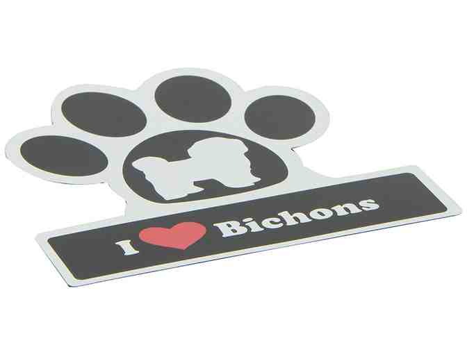 I love Bichons car magnet Will not fade or scratch UV coated for longer lasting color 4 inches by 6 inches