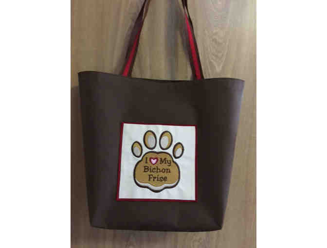 Handmade embroidery paw print tote bag. The fabric is light weight canvas and the fabric is pre-shrunk. W17" x H13" x D6"