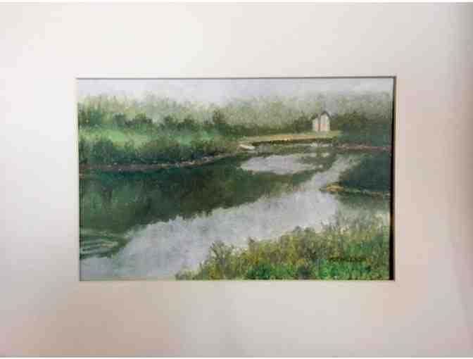 Local artist, Pam J. Nelson (1937-2011) maintained her home studio and gallery in Gales Ferry. She received her art training at the UConn, and numerous classes and workshops. She taught watercolor at the Lyman Allyn Art Museum in New London for seventeen years and private classes in her home studio. A frequent juror in regional shows including the Mystic Outdoor Art Festival, Nelson was an elected artist member of the Connecticut Watercolor Society, Connecticut Woman Artist, New Haven Paint and Clay Club,  Lyme Art Association,  Mystic Arts Center, Arts and Crafts Association of Meriden and the Monotype Guild of New England. She exhibited at UConn Jorgensen Art Gallery, The Connecticut Artist show at Slater Museum, Hoxie Gallery in Westerly, RI, Norwich Arts Council, Essex Art Association, Lyme Academy College of Fine Arts, and the Connecticut River Museum in Essex.