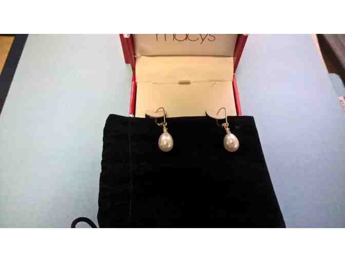 Cultured Pearls with a diamond accent above each pearl and 14K Gold pierced ear clasps.