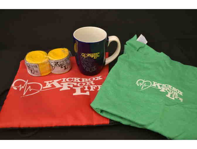Ever thought about trying Kickboxing? This is your chance to dive right in! A Kickbox For Life (KFL) sport bag, KFL hand wraps, KFL t-shirt, KFL mug and 1 month of unlimited classes at Kickbox For Life in Portsmouth, NH!