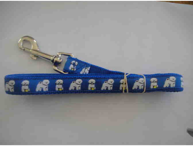 4ft. long leash adorned with Bichons. Made from durable woven nylon and machine washable. Made in the USA