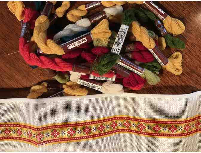 Handpainted needlepoint belt canvas and DMC wool yarn