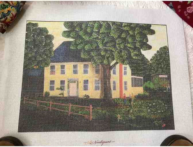 Printed needlepoint canvas; country cottage scene; 14 stitches per inch