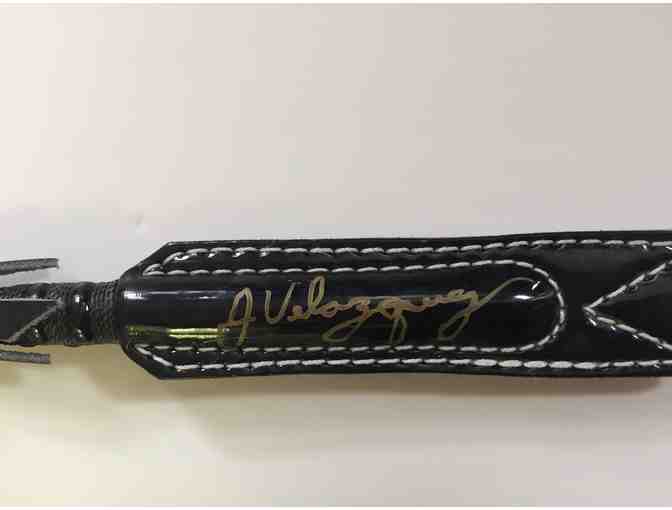 Jockey Racing Whip Signed by Hall of Famer John Velazquez, North America's all-time leading money-winning jockey and Saratoga's all=time leading rider. Donated by Jana Domino Foundation. Measures 29.5" long.