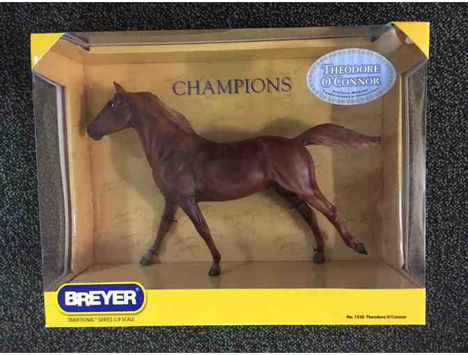 Theodore O’Connor History in the Making Thoroughbred Sportpony. Model # 1330. Nicknamed "Teddy," Theodore O'Connor was 14.1 3/4 hands (57.75 inches, 147 cm) pony who competed internationally at the highest level of eventing. Ridden by Olympian Karen O'Connor, he performed exceedingly well at such events as the Rolex Kentucky Three Day and the Pan American Games. His success and small stature earned him the nickname "Super Pony." Theodore O'Connor was out of Chelsea's Melody, a mare of half Thoroughbred, one-quarter Arabian, and on-quarter Shetland Pony breeding. The sire of Chelsea's Melody was a racing Thoroughbred by the name of Honest Turn, a great-grandson of Thoroughbred racing's 1957 Horse of the Year, Bold Ruler.