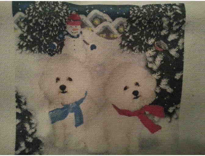 Cute bichon winter scene lunch bag with handle.Canvas Lunch Bag with Strap Handle 100% cotton canvas sack and strap12.5" x 8"x 5.5" canvas Roll to close with secure velcro Phthalate, BPA and Lead-Free Machine Washable